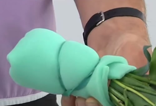- Özel torbasını saplara geçirdikten sonra sapların üst tarafından tekrar lastikle bağlanır. Böylece çiçekleriniz artık yolculuğa hazırdır.
