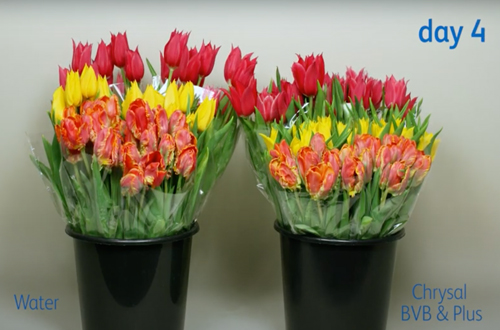 Chrysal BVB & Plus, özellikle laleler için hasat sonrası bir üründür. Lalelerde sap uzamasını ve yaprak sararmasını önler, vazo ömrünü optimal seviyeye yükseltir. Bu ürün tercihen yetiştiriciler tarafından hasattan hemen sonra kullanılır. Chrysal BVB & Plus, gelişmiş tomurcuk açma, gövde ve çiçek kalitesi sayesinde çiçeklerin vazo ömrünü önemli ölçüde uzatır.