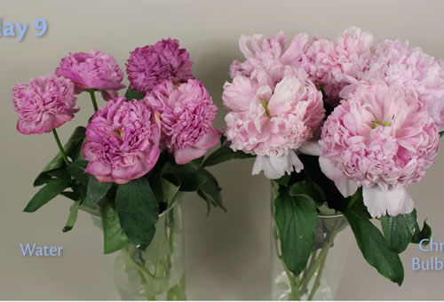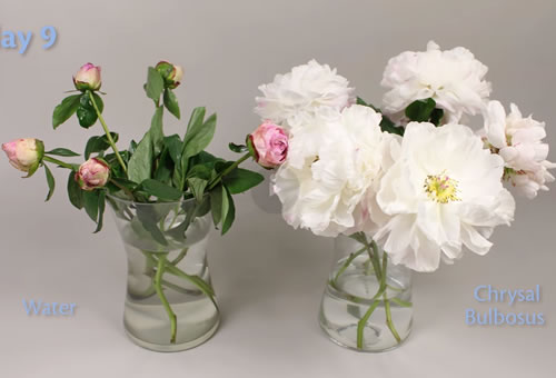 Aşağıdaki grafik, iris, lale, frezya ve gladiolus gibi tüm soğanlı çiçeklerin vazo ömürlerinin bir başına suyla kıyaslandığındaki test sonuçlarını göstermektedir.