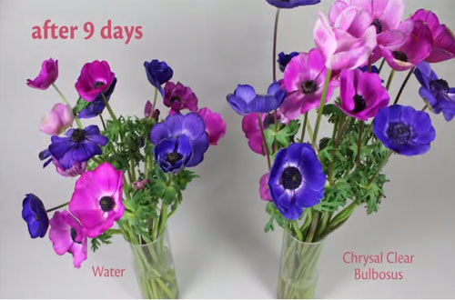 Soğanlı çiçeklerin kesim sonrası en büyük iki sorunu, vazo ömürlerinin umulandan kısa olması ve yaprak kalitesidir. Yapılan sayısız deneyler sonucu, Chrysal Clear çiçek besininin bu çiçeklerin vazo ömürlerini temelden değiştirerek uzattığı kanıtlanmıştır. Chrysal tarafından sürdürülen ek araştırmalarla geliştirilen çiçeklere özel yeni gıdanın ise, çok daha ileri sonuçlar verdiği, çiçek ve yaprak kalitesini geliştirerek vazo ömürlerini de daha çok uzattığı görülmüştür. Bu yeni gıda, Chrysal Clear Soğanlı Çiçek Besinidir. Bu ürün, özellikle lalelerin, irislerin, frezyaların ve anemonların vazo ömürlerindeki pozitif etkisiyle kendisini gösterir. Bu ürün, bitkilerin renklerini, büyüklüklerini, tomurcukların çiçek açmalarını ve ayrıca mükemmel yaprak kalitesini de güvence altına alır.