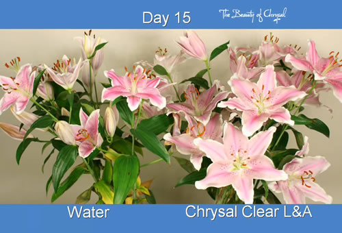 Lilium ve Alstroemeria'larda kesim sonrası en büyük iki sorun, vazo ömürlerinin umulandan kısa olması ve yaprak kalitesidir. Yapılan sayısız deneyler sonucu, Chrysal Clear çiçek besininin bu çiçeklerin vazo ömürlerini temelden değiştirerek uzattığı kanıtlanmıştır. Yaprak kalitesi ile ilgili bu sorunun üstesinden gelmek için, Chrysal özel bir çiçek besini geliştirmiştir: Chrysal Clear L&A. Ürün, kolay açılan ve buket kalite algısını bütünleyen sachet’ler (poşet) biçiminde sunulmaktadır.